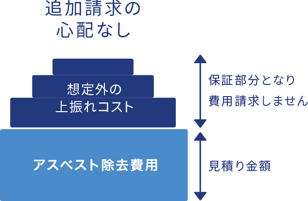 コストキャップにより除去費用を保証するため、解体中に発覚する隠蔽部の除去費用等も追加請求の心配がありません。
