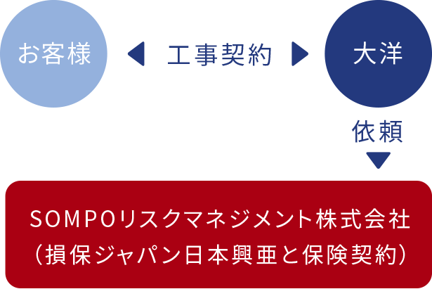 大洋とご契約いただいた後、SOMPOリスクマネジメント株式会社を通じて大洋を被保険者とする保険を手配します。